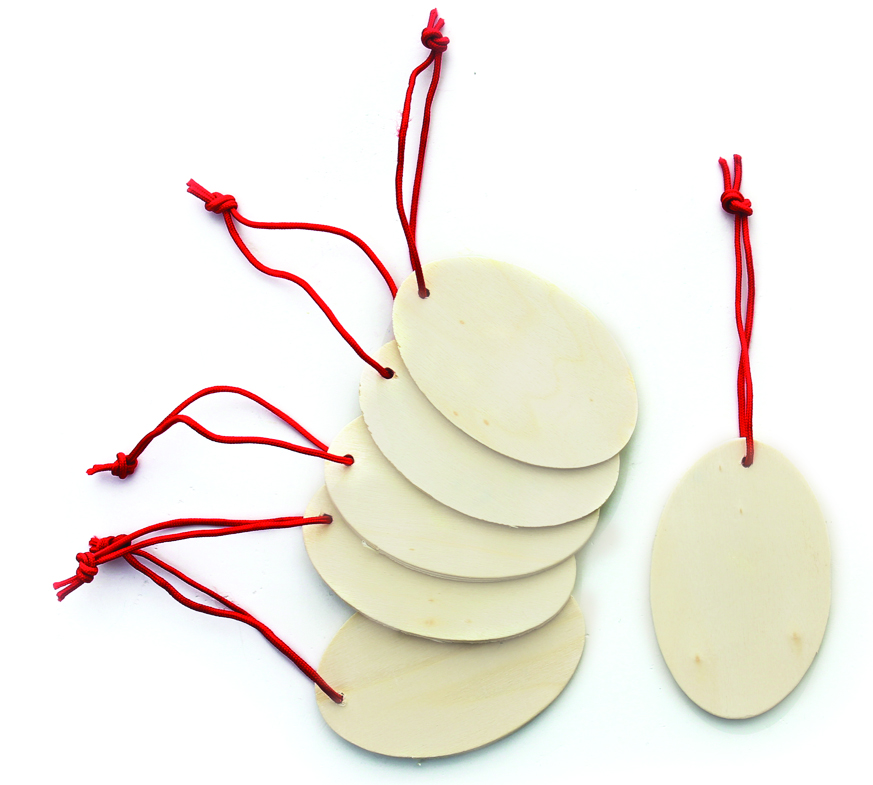 Přírodní provedení, červená nit pro zavěšení.