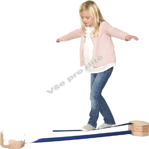 Hravou formou trénuje smysl pro rovnováhu, koordinaci a posiluje koncentraci. Popruh je umístěn na dvou dřevěných kostkách.
