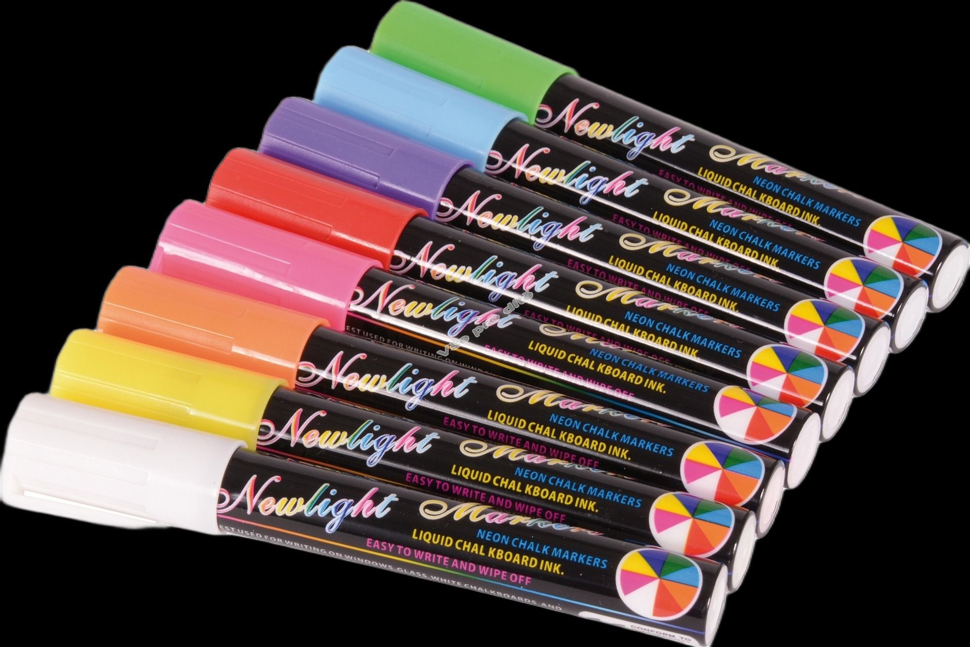 S těmito tekutými křídovými pery se může psát na tabule, okna, zrcadla, kov a keramiku. Kulatý hrot je ideální pro jemné linky i pro barvení ploch. Mají jasnou barvu a snadno se odstraní. Vhodné na popisování světelné tabule.